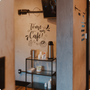 Enquanto cuidamos do seu aparelho, aproveite nosso coworking com conforto, Wi-Fi e um ambiente tranquilo para trabalhar ou se conectar sem interrupções.
